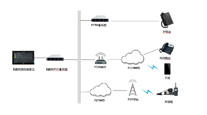 3、有线调度通过有线连接,对接融合通讯平台,可直接呼叫手机和固定电话,实现有线调度。